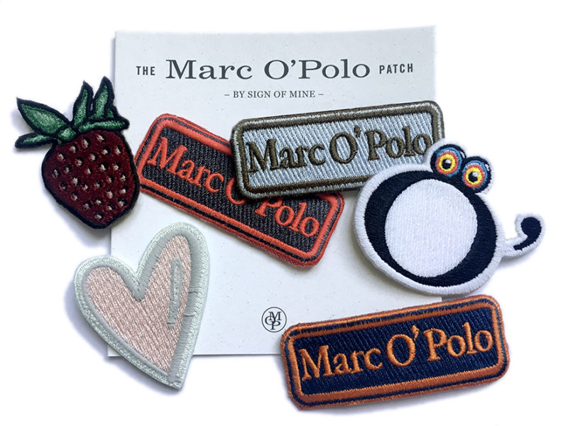 A collection of college style patches designed by Sign of Mine with bespoke packaging for clients of Tommy Hilfiger Stores to choose from at their purchase.